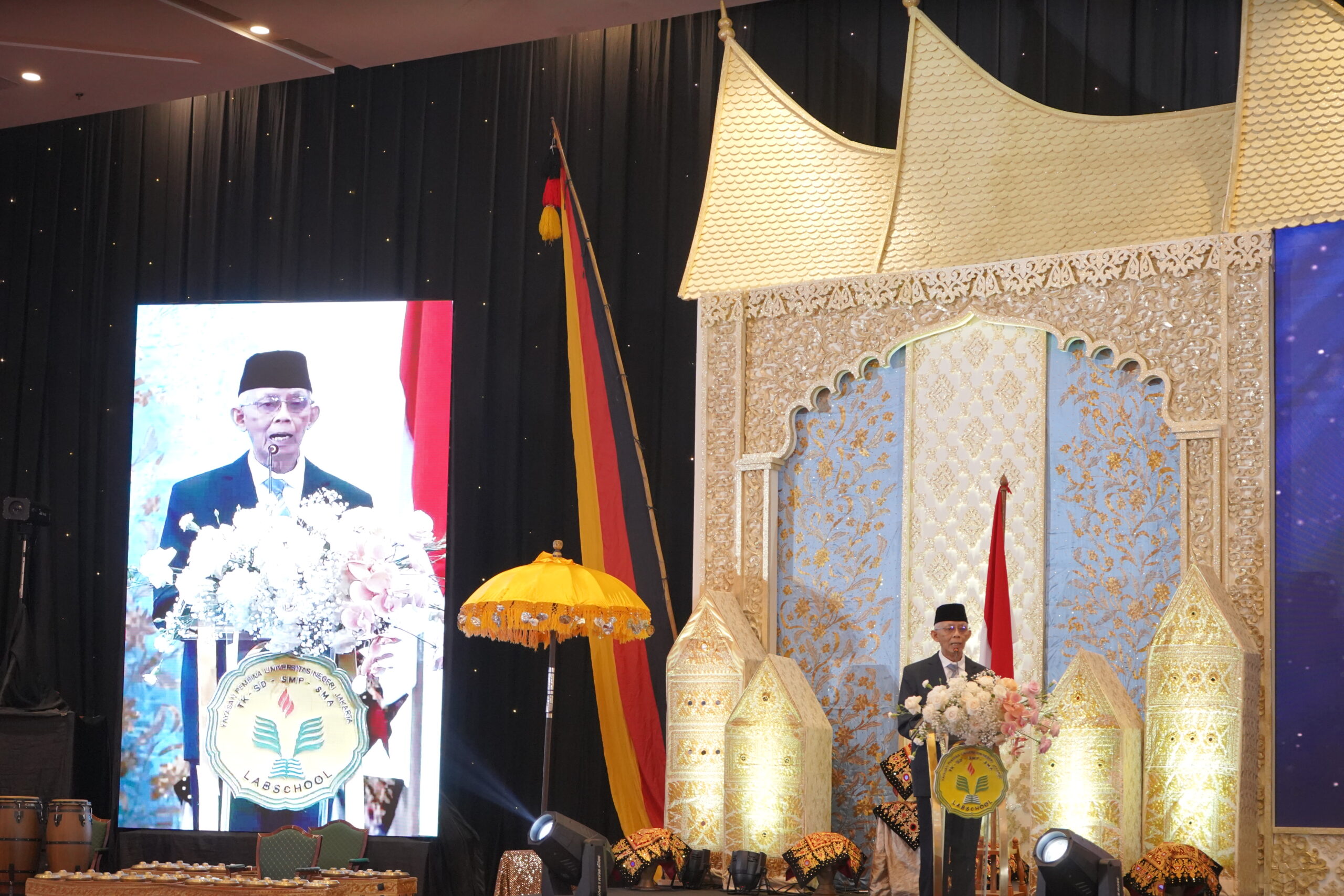 Humas PSL Labschool – Mengusung adat Minang dari Provinsi Sumatera Barat dengan tema “Alam Takambang Jadi Guru” pada wisuda tahun 2024 SMA Labschool Jakarta mewisuda 240 siswa dan siswinya angkatan Isvaraya Revadhana di Hotel Bidakara, Jakarta pada 13 Mei 2024. Acara dibuka oleh persembahan Tari Suntiang Badantiang oleh siswa/i SMA Labschool Jakarta dengan sangat memukau, alasan dipilihnya tema “Alam Takambang Jadi Guru” pada Wisuda kali ini tidak lain merupakan falsafah pendidikan masyarakat Minangkabau sebagai dasar pembentukan karakter melalui kearifan lokal yang bersumber dari alam sebagai tempat belajar.